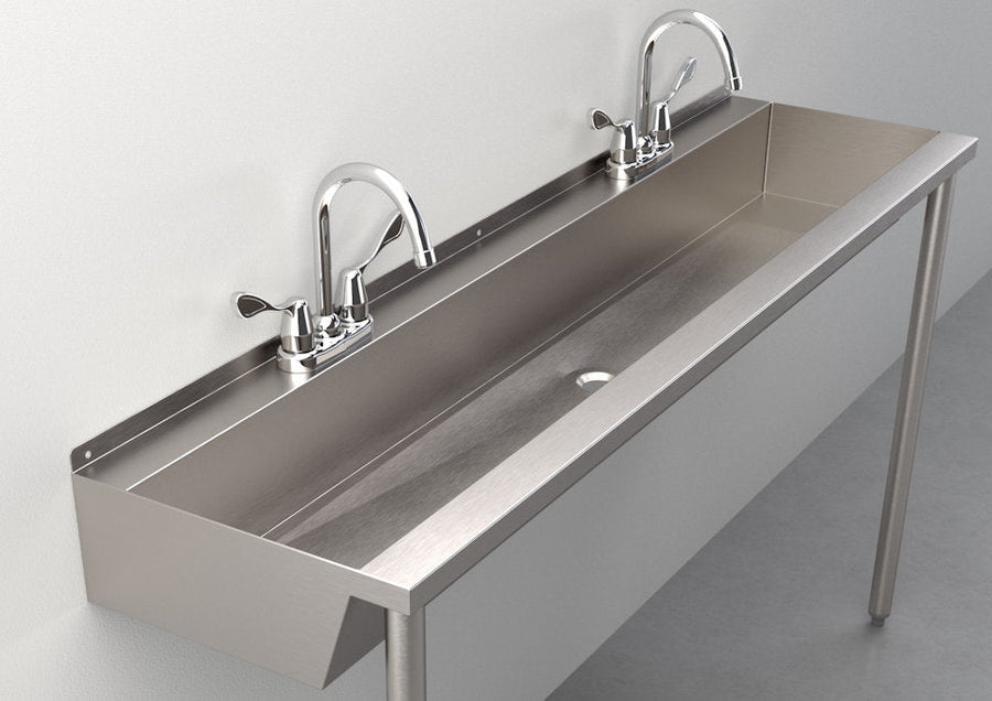 Trough sinks offer clean aesthetics while being durable, functional, and easy to maintain. Choose from solid surface or stainless steel materials with widths ranging from 30" to 120".